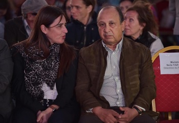 Dans le cortège, il y a de tout, comme toujours : Neila Tazi, souriante mais attentive à ce qui se passe autour d’elle, un conseiller du roi nommé André Azoulay heureux de voir sa ville en joie et un autre conseiller royal, Youssef Amrani, plus discret et parfois souriant… Le tout nouveau ministre de la Culture Mohamed el Aaraj désormais plus à l’aise dans son costume de ministre, et Mohamed Sajid, toujours aussi taiseux, le sourire aussi ennuyé que le regard est vague, contrairement à sa pétillante secrétaire d’Etat Lamia Boutaleb, visiblement enchantée d’être là… et bien entendu, parmi les marcheurs, l’habitué du Festival et co-organisateur du Forum, le patron du CNDH Driss El Yazami.