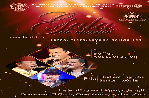 Le club associatif Rotaract de l’Ecole Hassania des Travaux Publics (E.H.T.P) organise un grand gala en faveur des personnes atteintes de maladies rares à Casablanca, le jeudi 19 avril 2018.