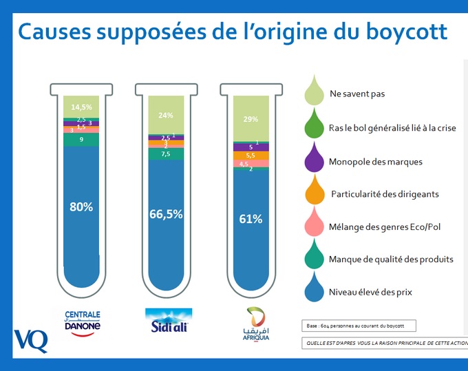 Cependant, et alors que les sondés imputent le boycott à l’agacement généralisé contre la vie chère, avec un plus pour Centrale Danone, 80% de ras-le-bol contre 67% pour Sidi Ali et « seulement » 61% pour Afriquia, on constate que pour cette dernière marque, on ajoute la « particularité des dirigeants » et le « mélange de la politique et de l’économie », Aziz Akhannouch étant actionnaire principal d’Afriquia et par ailleurs ministre et chef de parti. Ce sont en tout 25% des sondés qui boycottent Afriquia pour des raisons autres que le motif principal du prix. Un début de perception – et/ou de politisation – à ne pas négliger, donc…