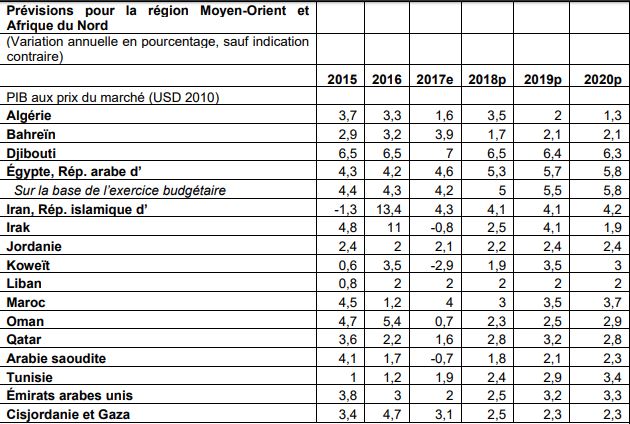 Les prévisions de croissance en Arabie saoudite devraient être revues à la hausse, à 1,8 % cette année et 2,1 % l’année prochaine. L’Iran devrait enregistrer une croissance de 4,1 % en 2018 et en 2019.
