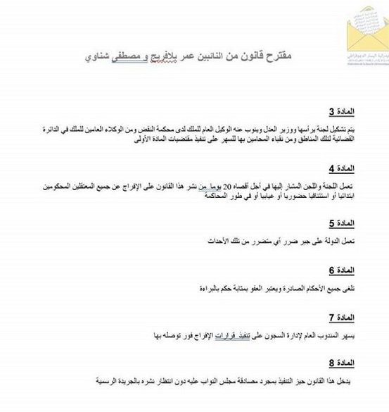 MM. Balafrej et Chennaoui demandent la mise en application immédiate de cette loi d'amnistie, dès son adoption au parlement, sans même attendre sa publication au Bulletin Officiel, qui peut tarder...