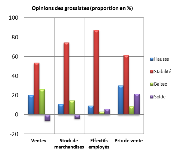 Les stocks de marchandises se seraient situés à un niveau normal selon 74% des grossistes et inférieur à la normale selon 15%.