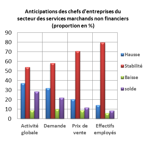 Les anticipations des chefs d'entreprises du secteur des services marchands non financiers, pour le 4ème trimestre 2018, révèlent une hausse de l’activité globale, selon 37% d’entre eux, et une baisse selon 9%.
