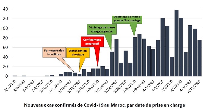 Pour sa part, le Maroc a très vitre entrepris un vaste plan de riposte. Cette chronologie réalisée par le ministère de la Santé retrace la situation épidémiologique au Maroc du 02 mars au 12 avril 2020 avec les différentes mesures prises par le royaume pour endiguer la propagation du virus.
