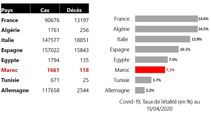 Comparativement à d’autres pays, le royaume a un taux de létalité très bas se situant à 7,1%, loin derrière l’Algérie qui enregistre un taux de 14% et devant la Tunisie qui a un taux de 3,7%.