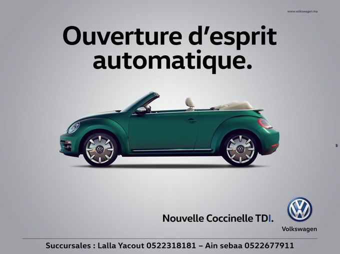 La nouvelle Volkswagen Beetle arrive au Maroc avec une campagne de communication lancée par l’agence Rapp. Les amateurs de la mythique Coccinelle allemande pourront enfin se réjouir avec ce nouveau modèle. Avec sa forme très distinctive, offerte en coupé ou en cabriolet, la Beetle 2017 a su garder ses mêmes fonctionnalités, mais améliorées.