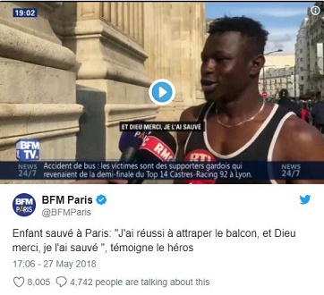 « Je n'ai rien pensé, j'ai pensé à le sauver et Dieu merci, je l'ai sauvé », raconte depuis inlassablement le jeune homme, qui est arrivé en France en septembre 2017.