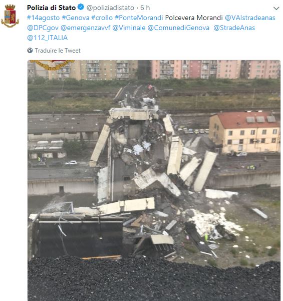 Dans un article écrit sur Twitter peu après l’effondrement, le ministre de l’Infrastructure, Danilo Toninelli, a qualifié l’incident de «tragédie immense» et déclaré que le gouvernement était en contact étroit avec Autostrade, l’opérateur d’autoroute.