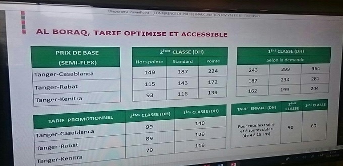 Ce vendredi, le PDG de l'Office national des chemins de fer (ONCF), Mohamed Rabie Khlie a dévoilé lors de la conférence de presse de la présentation de la LGV tenue à Tanger, les différentes tarifications qui seront appliquées.